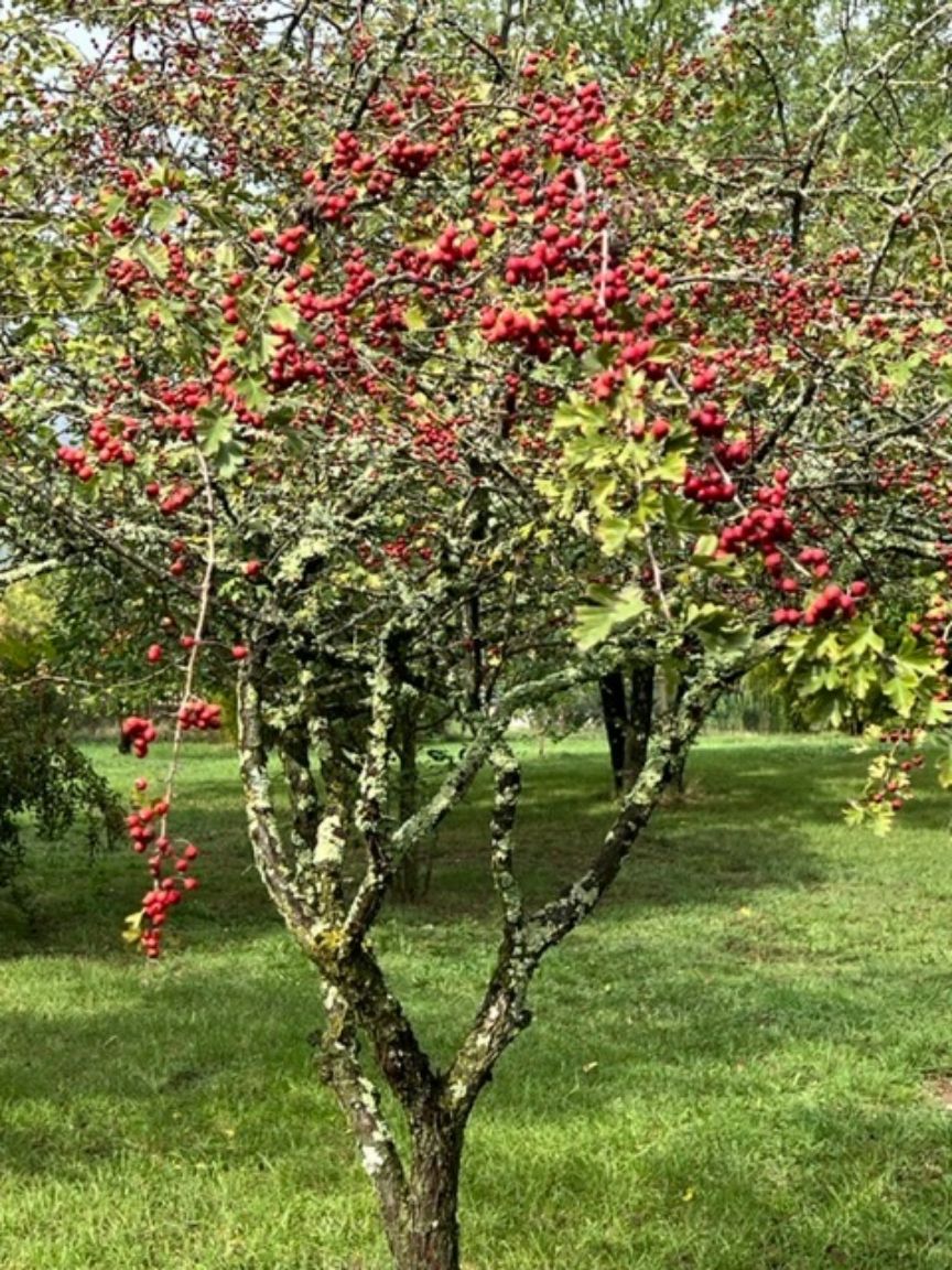 Cette année la nature se pare de belles couleurs plus tardivement, cette aubépine offre une nourriture pour les oiseaux, les insectes...